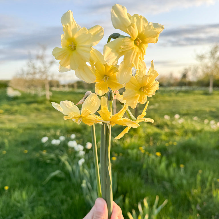 Please note: When cut, daffodils and narcissus emit a toxic sap that can cause skin irritation. Use caution and wear gloves when harvesting.