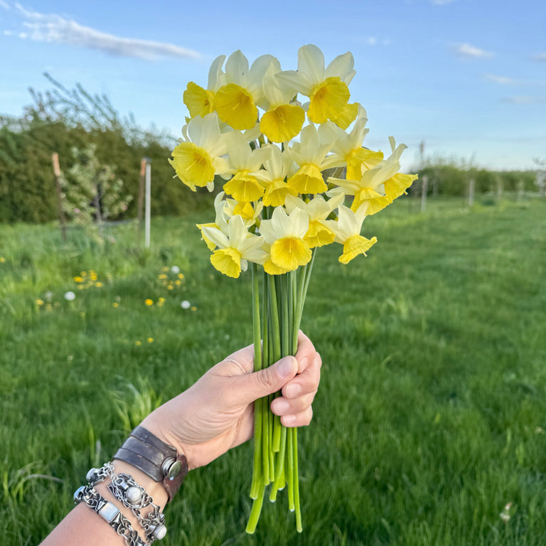 Please note: When cut, daffodils and narcissus emit a toxic sap that can cause skin irritation. Use caution and wear gloves when harvesting.